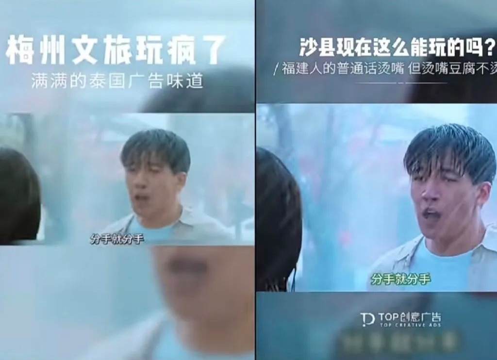 ▲梅州文旅张扬片(图左)被指剽窃了福建文旅沙县小吃的张扬片(图右)。图/群集视频截图