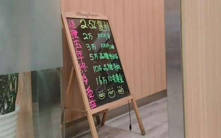 ▲一银行内摆放着张扬保险产物的展板。最新往事记者 韩福涛 摄