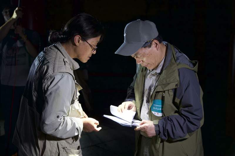 颐以及园第16次雨燕环志,付建平与现场技术总指挥赵欣如分说使命流程。高景欣 摄