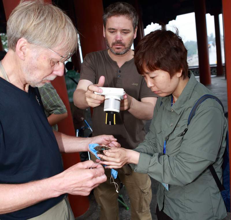 被迫者梁烜以及外国专家一起给雨燕佩戴定位器。王园生 摄