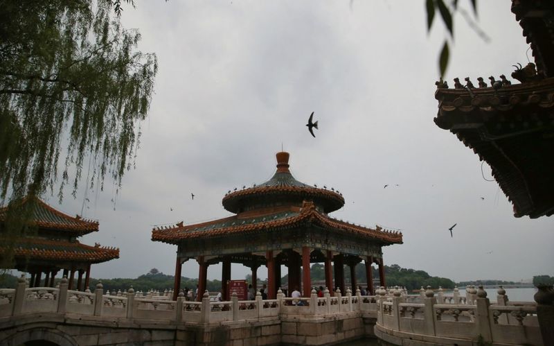 7月11日,北海公园,雨燕飞过五龙亭。最新往事记者 薛珺 摄