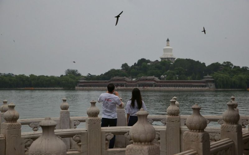 7月11日,北海公园,被迫者白涛(左)以及北北(右)在五龙亭审核雨燕。最新往事记者 薛珺 摄
