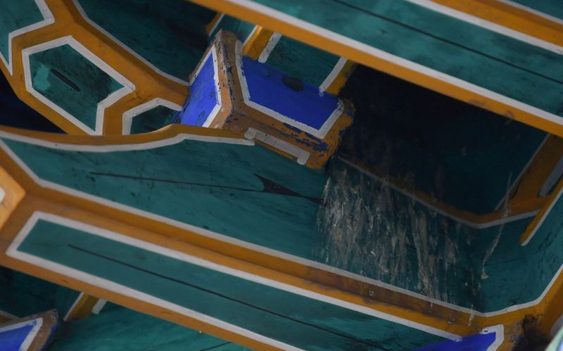 7月12日,正阳门城楼木构件上有雨燕“甩出”巢穴的粪便。最新往事记者 李木易 摄