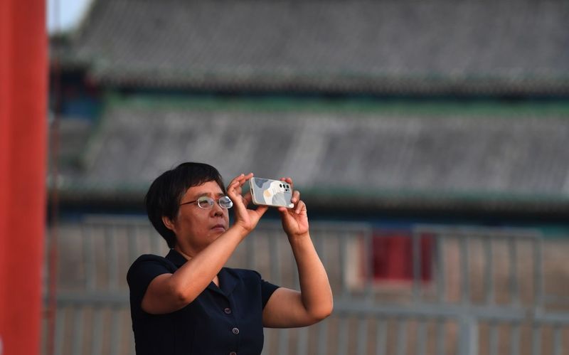 7月11日,北海公园,被迫者白涛揭示手机拍摄的雨燕照片。最新往事记者 薛珺 摄