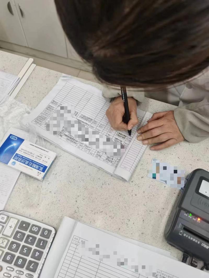 1月中旬,陈锋在山西一家药店试验置办右美沙芬,伙计在台本上挂号信息。受访者供图