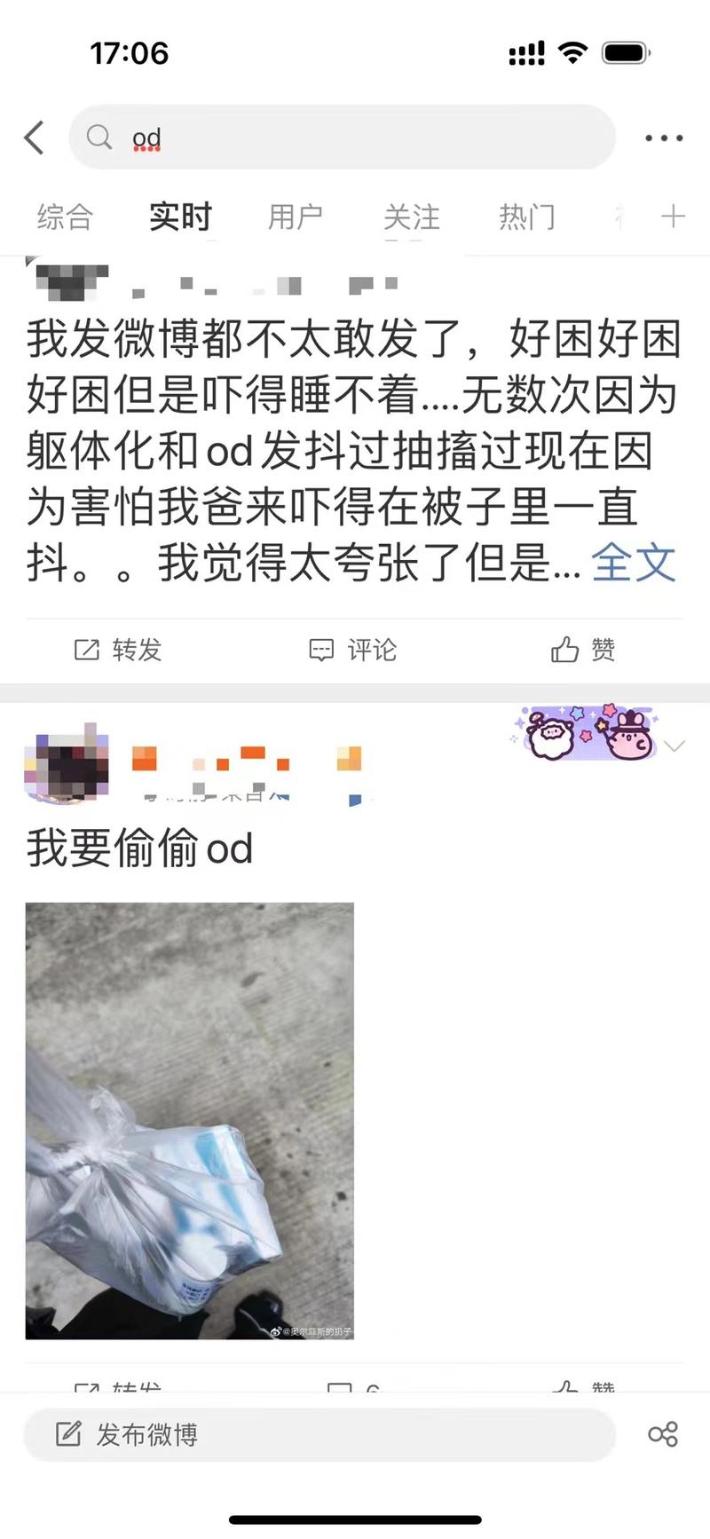 在微博上,输入关键词od会泛起大批相关内容。群集截图