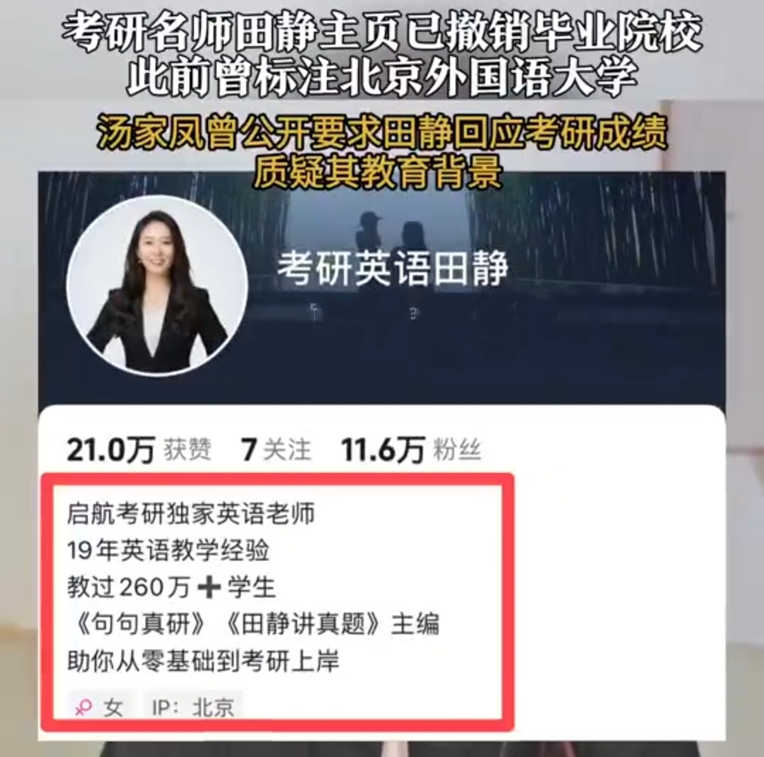 ▲田静的社交账号上已经无结业院校信息。图/社交平台截图