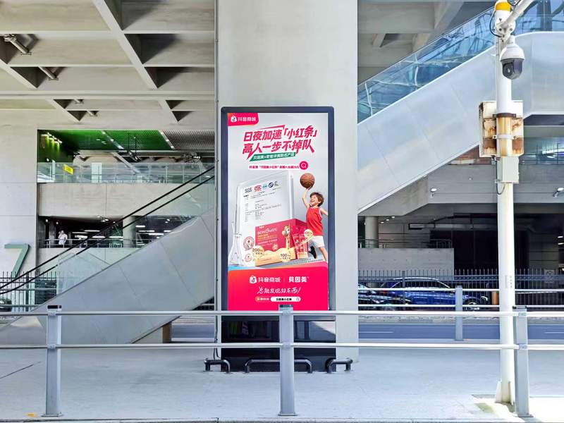 上海浦东机场,揭示的贝因美小红条液体钙广告牌。企业供图