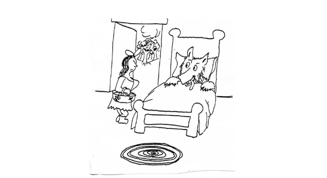 瑟伯为《小女孩以及大灰狼》画的插图。