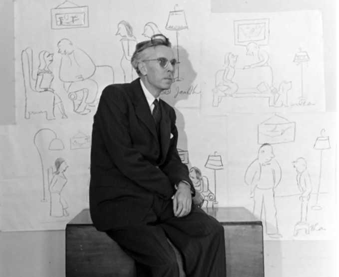 尽管瑟伯在《纽约客》编纂部只待了六年,但1933年他并吞后,仍是不断是该杂志的主要撰稿人。此时他年近四十,著述颇丰,但右眼的视力开始消退,到五六十岁时,多少多乎双目失明。视力的缺憾无奈约束他的想象力,不能在打字机前写故事,瑟伯便在脑海中想象,而后口述腹稿,让秘书(同时也是他的第二任妻子)笔录。