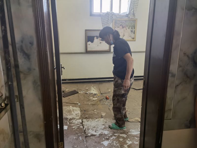 李进英下班后,还在一遍到处擦家里的土壤,儿子的婚房已经重新整理完了,沙发、床垫搬进去晾干,又重新放回原地,彷佛不进过水同样。她自己的屋子里,尚有多少多间没操持,厨房、洗手间,一个空荡荡的睡房,地面有塌陷,她有些耽忧,不敢待在屋里太持久,怕再一次下陷。