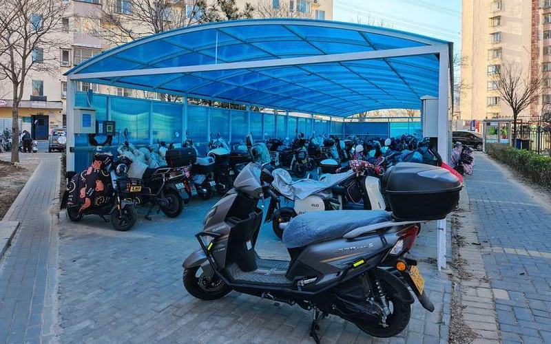 ▲北京通州区玉桥东里南社区新建的充电车棚。最新往事记者 张璐 摄