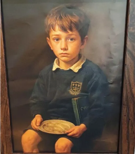 对于这幅画作的内容,马罗也陈说了他的想法。“盘子是空的。书是合上的。他的克制上印着一个早已经消逝的机构的标志。”从画作中,不美不雅众看不出小男孩是在期待食物、期待表彰,仍是仅仅只是被周围人淡忘了。“接下来是一句威尔士语,翻译从前是——饥饿中,他自动学习;贫穷中,他自动生涯;威尔士,他称之为家。”