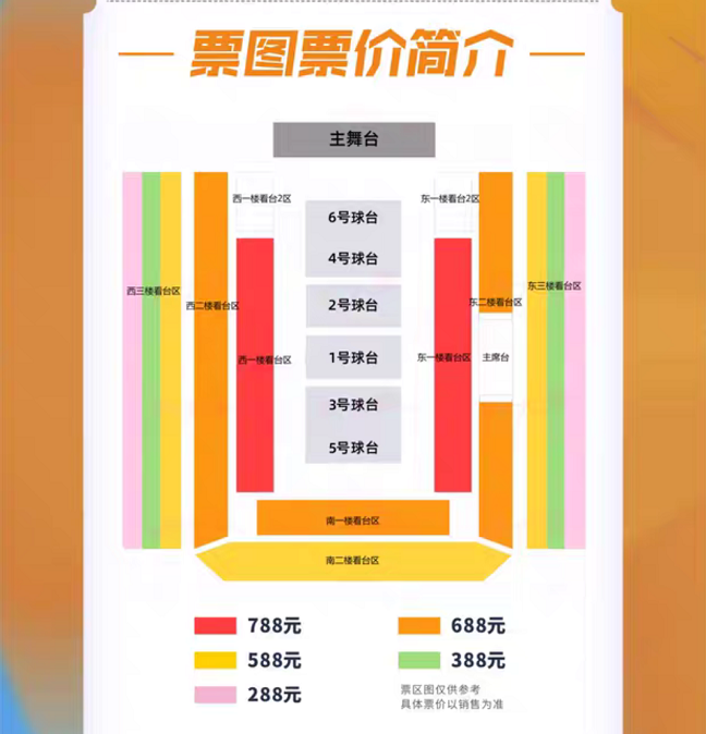 据赛事票务平台信息,最低12月5日11时开售12月12日至14日角逐场次球票,元最12月6日11时开售12月15日至16日角逐场次球票。赛事时期,逐日11:00以及19:00各一场角逐,5天合计10场售票场次。每一场次设五档票价,最低票价288元,最高票价788元。