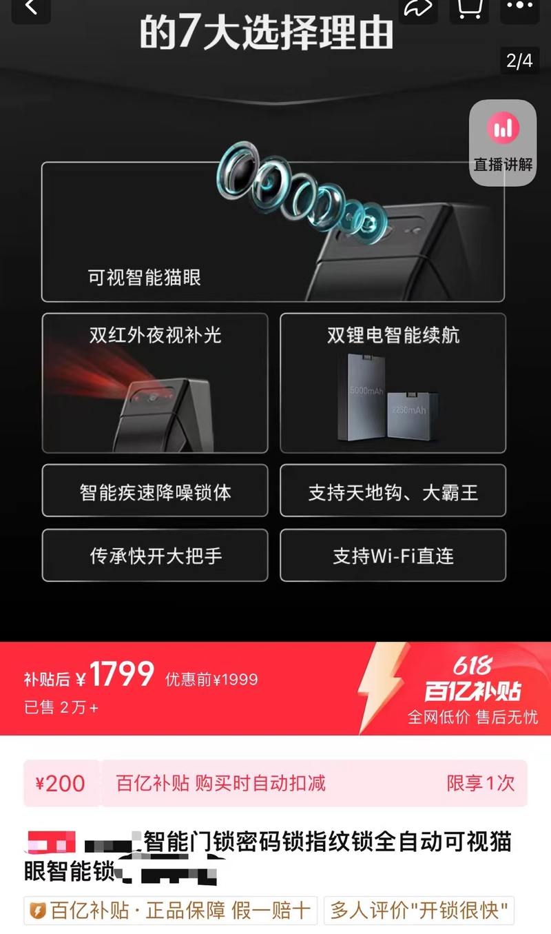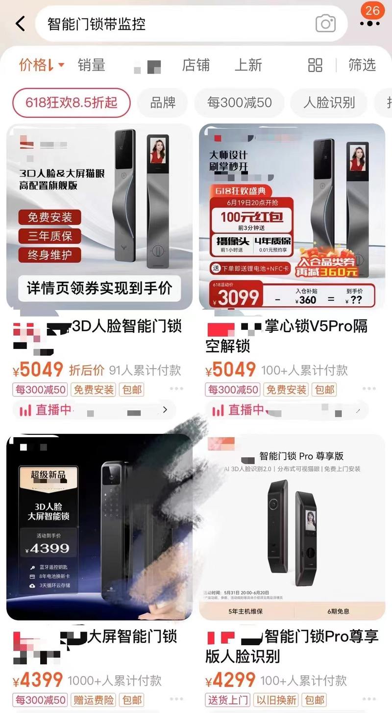 1080P高清画质,雷达侦测、AI人形检测、3D刷脸开门、环视夜视、持久续航……记者在多个电商平台看到,商家自动于揭示智能门锁等配置装备部署装备部署五光十色的功能,这些科技感满满的产物售价在多少多百到数千元不等,功能越周全,价钱也越高。