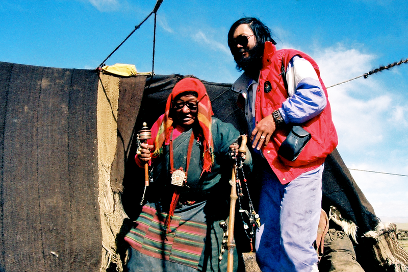 1994年,杨欣在长江源审核中,走进一户牧夷易近家中。 受访者供图