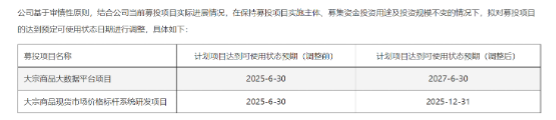 此外,记者留意到,其募投名目当初均处于未开工形态。原定“大批商品大数据平台名目”以及“大批商品现货市场价钱标杆零星研发名目”的妄想名目抵达可运用形态日期均为往年6月30日,可是当初已经延期至2027年6月30日、2025年12月31日。