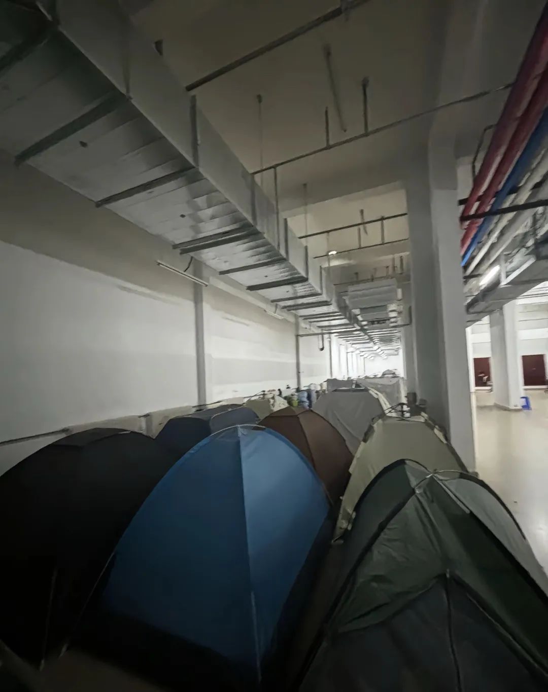 ▲克日,吉林大学学生为避暑在宿舍果真室里支帐篷住宿。帐篷再不装空图/群集截图