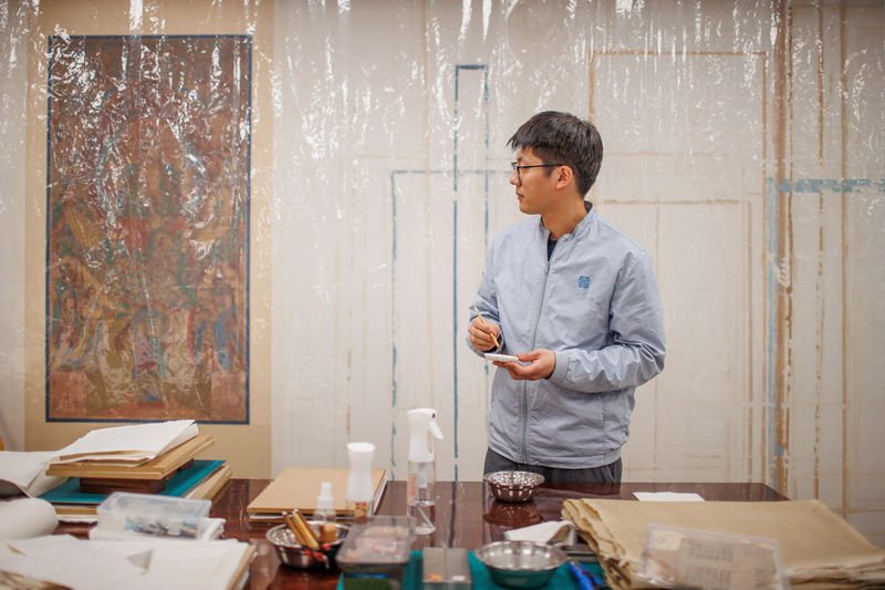 ▲4月24日,国家图书馆,正在使掷中的国家图书馆文献修复组的修复师李屹东。