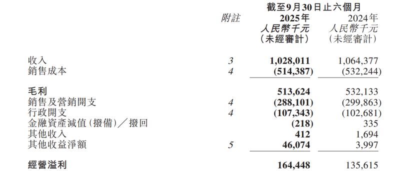 中期支出下滑3.4%至10.28亿元,发售隶属公司精简营运