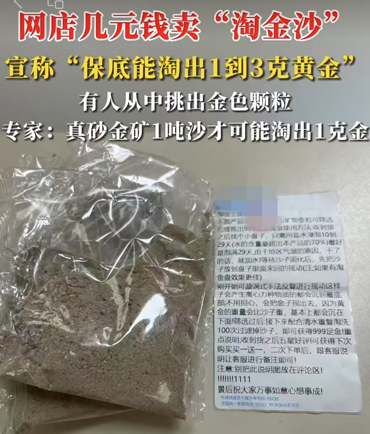 ▲多少多十元的网购“淘金沙”就能淘洗出1到3克黄金,单是都是套路从老本上看就差距理。图/群集视频截图