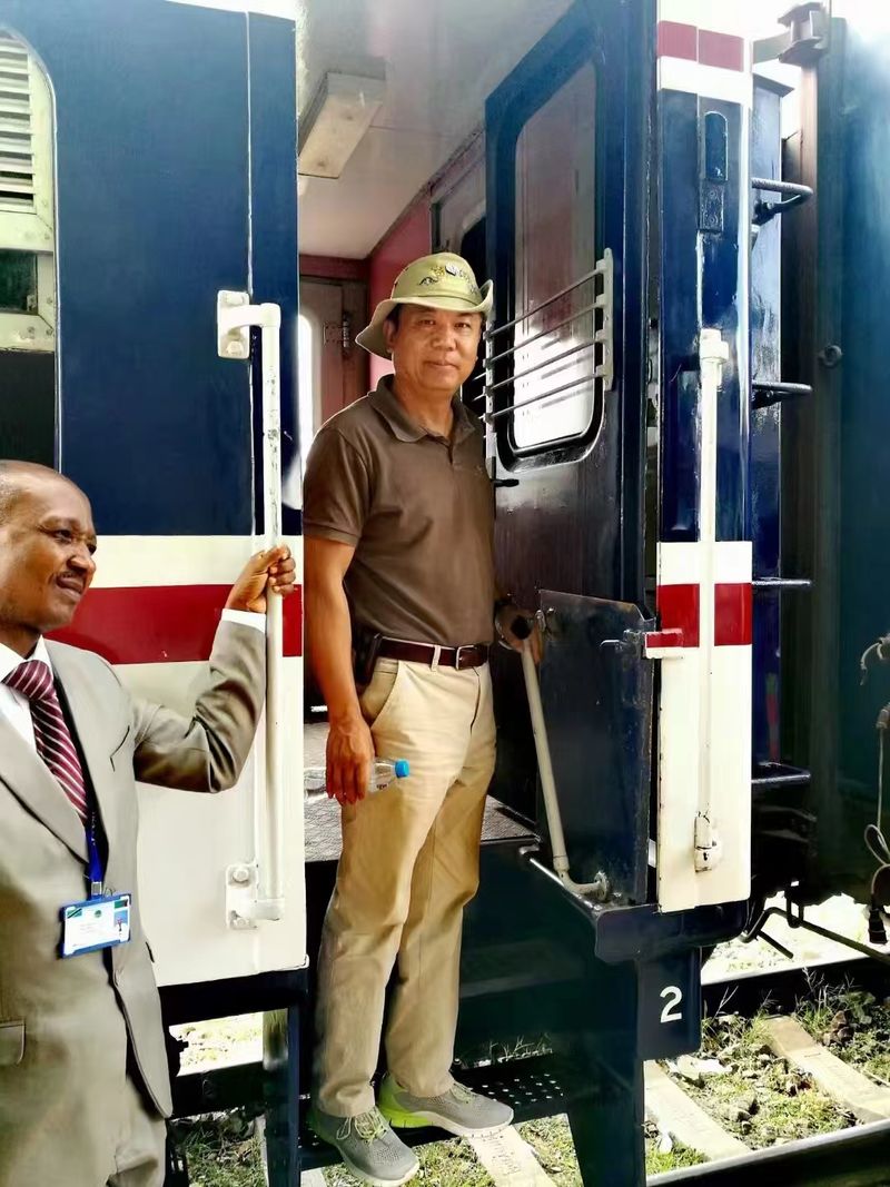 2017年,苟皓东在达累斯萨拉姆的坦赞铁路列车上。受访者供图