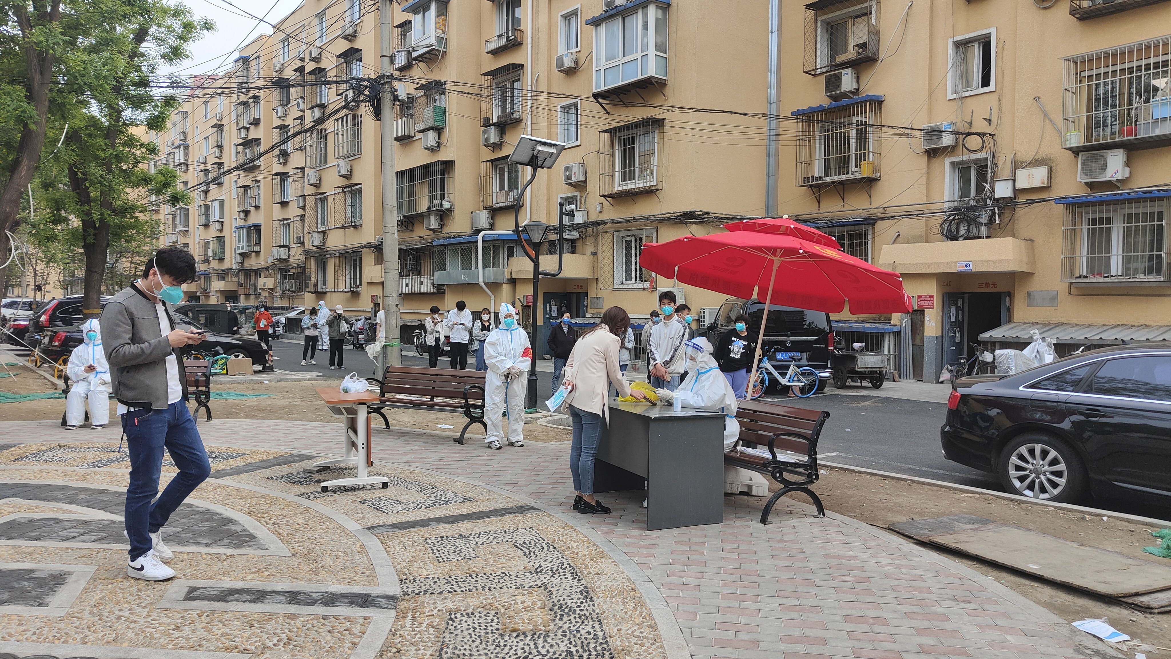 4月29日早上5点多,北京市背阴区松榆里社区松五小区已经早早醒来。负责在小区门口规画职员收支的被迫者们陆续抵达,他们是背阴区文旅局的使命职员,为了配合地域防疫规画,下沉社区做被迫者。